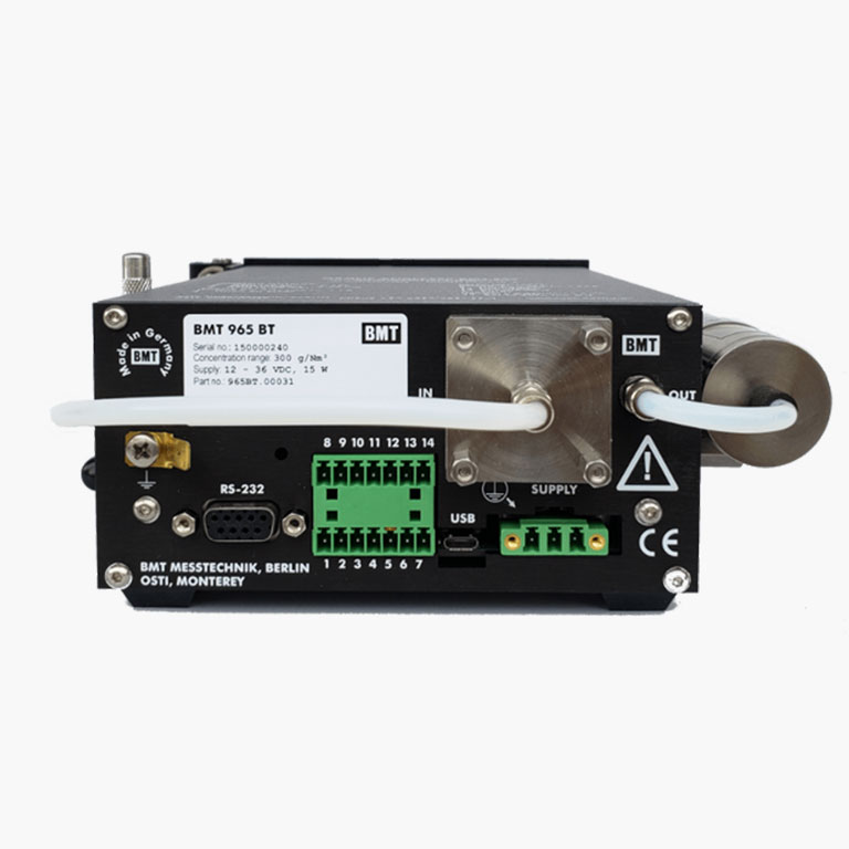 4.数据存储与传输:内置 8GB 非易失性日志内存(存储浓度与误差日志),支持 USB On-The-Go(可接 U 盘升级固件 / 拷贝日志)、RS-232 双向隔离接口,搭配 Windows 软件 “BMT 965 Link” 可实现全参数控制与日志读取。